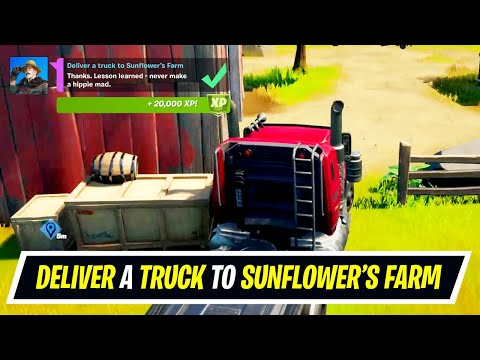 How to Delivery a truck to Sunflowers Farm - Fortnite in this video I will show you how to Delivery a truck to Sunflowers Farm in Fornite. Each challenge requires the player to interact with farms in a different way and one of the challenges requires players to deliver a truck to Sunflower Farms. One particular challenge requires you to know where to go.